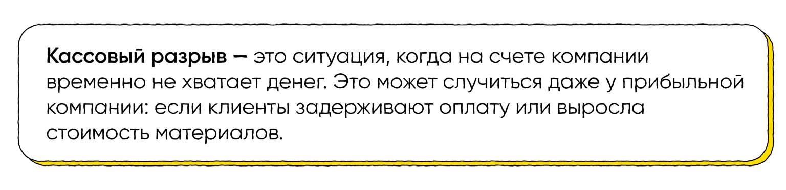 — Допустим, в следующем месяце прибыль компании планируется в размере 200 000 рублей, но после корректировок на счете остается минус 50 000 рублей. Это говорит о кассовом разрыве: прибыль на бумаге есть, но денег для обязательных платежей не хватает.