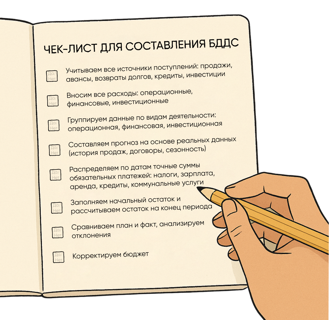 Андрей ушел с пониманием: БДДС — это не формальный отчет, а рабочий инструмент, который помогает управлять финансами компании и защищает бизнес от кассовых разрывов. Теперь он знает, как планировать платежи так, чтобы всегда хватало средств на обязательные расходы.
