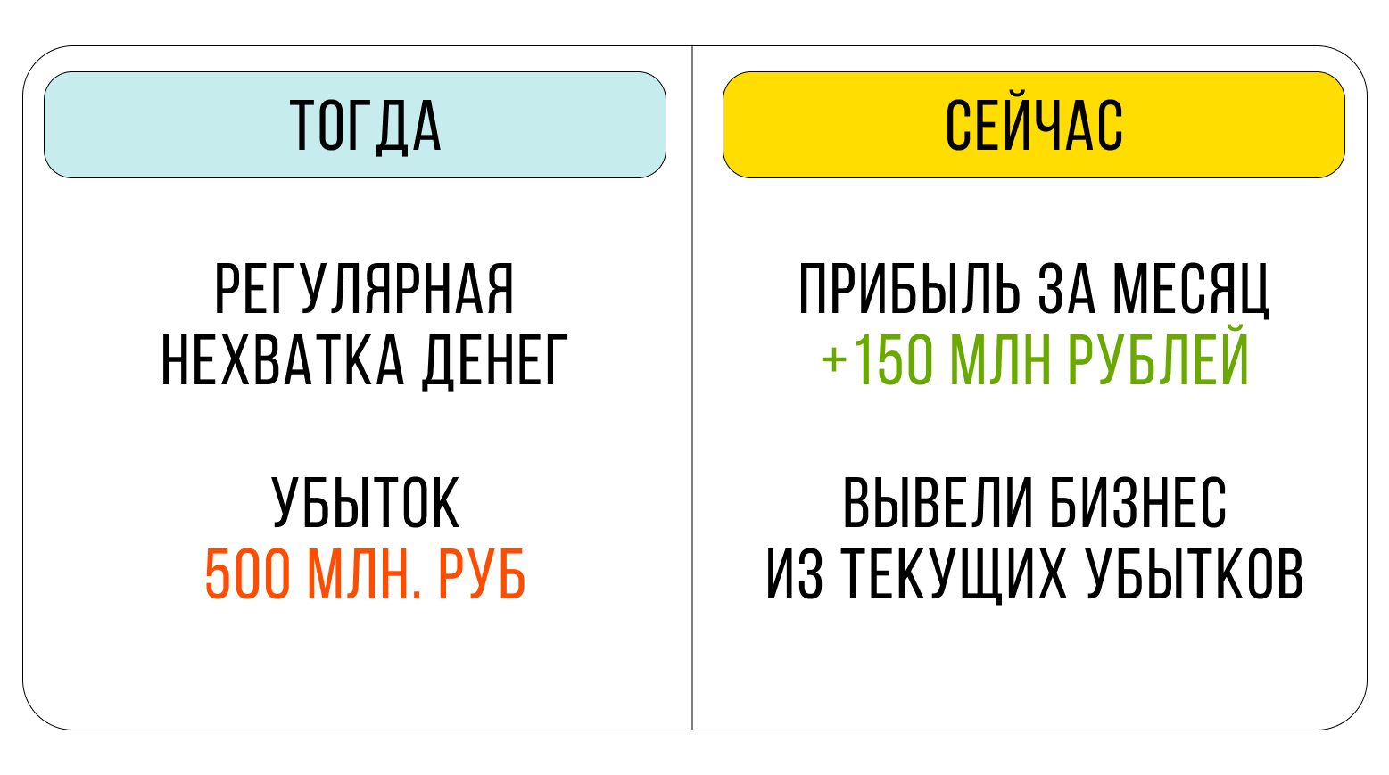 В итоге: вывели бизнес из текущих убытков и вышли на +150 млн рублей прибыли на второй год работы