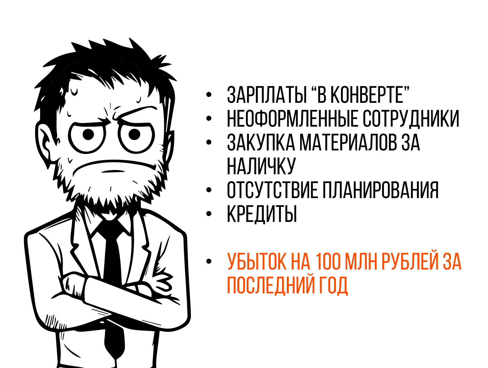 Собственник строительной компании «СтройПром» (название мы выдумали, чтобы не раскрывать клиентскую тайну, но сама история реальная) обратился к нам, чтобы мы помогли ему вылезти из периодических кассовых разрывов. Но когда финдиректор собрала отчетность, оказалось, что компания за несколько лет накопила убытков на 500 млн рублей и вообще стоит на грани банкротства.